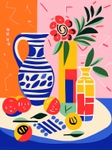 The original painting "Abstract Still-life XXXIV" was created with colourful acrylic paints on a standard canvas. Ideal for your home, living room, dining room, bedroom or office.